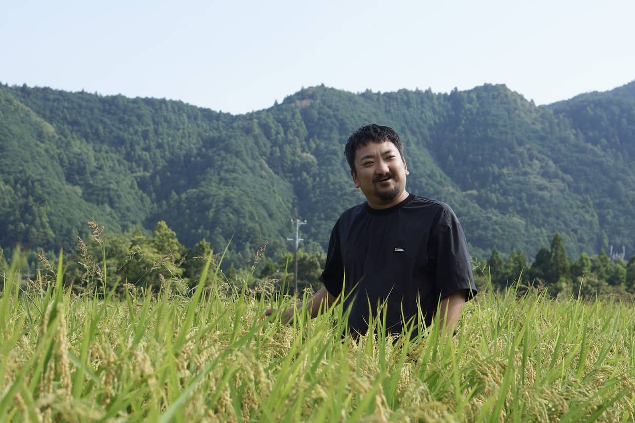 元坂酒造の自社田にて